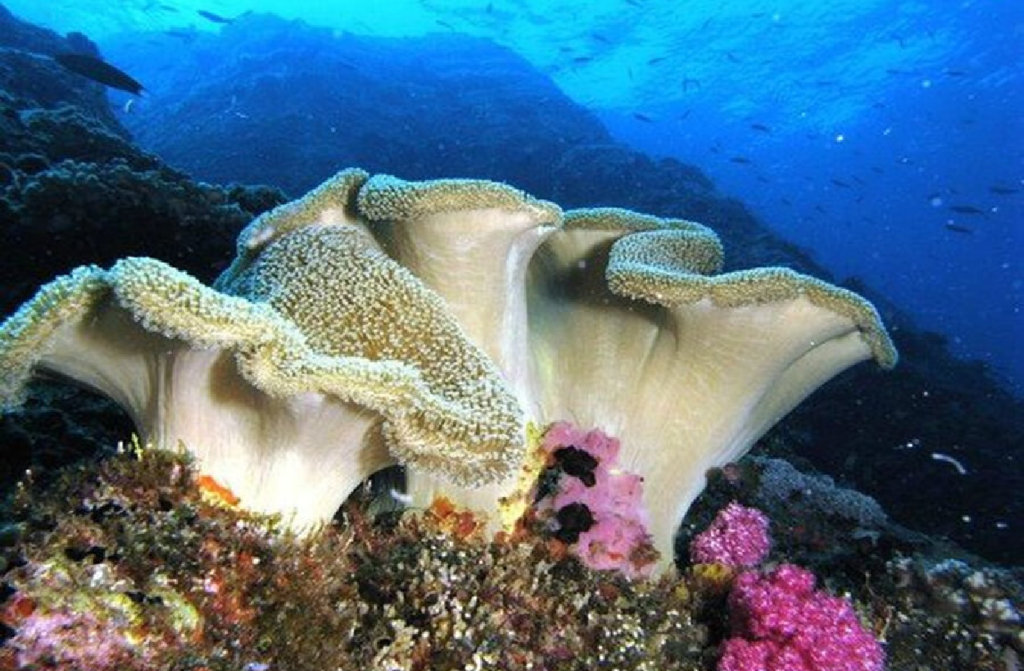 These sites usually begin with a drop off over shallow water close to the island. shortly after descending you can usually expect some mild to moderate current to drift you along a coralline littered with large rock formations. Sea whips cover the sand areas and the rocks on the southwestern edge drop down beyond 25m. one rock, in particular, gives the later part of this dive site the nickname ” The Edge” because that’s exactly what you get as you drift over a rock at about 17m and all of a sudden it drops away over the edge into the deep blue. a great place to see larger Pelagic fish playing with the currents and hunting.